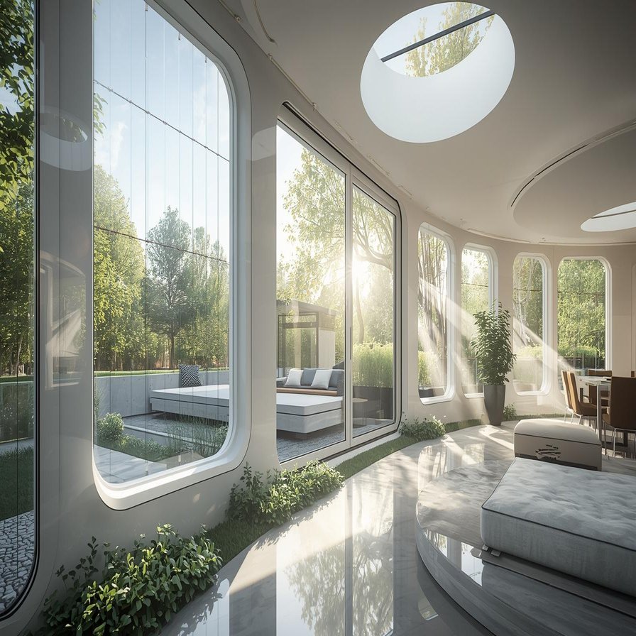 昼間は太陽の光を浴びながら、夜に使う電気を蓄えていく。曇りの日でも、雨の日でも、窓や壁が少しずつ発電を続けてくれる。