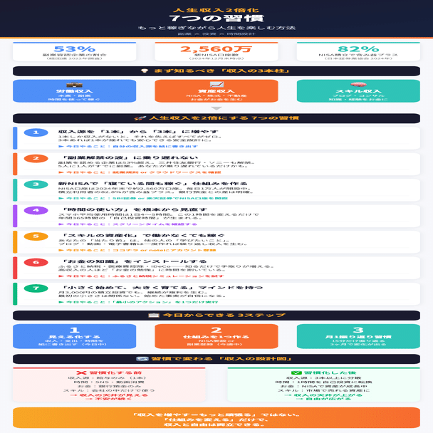 この記事では、「7つの習慣」を通じて、収入を2倍化しながら人生を楽しむための具体的な方法をお伝えします。驚く準備はできていますか?