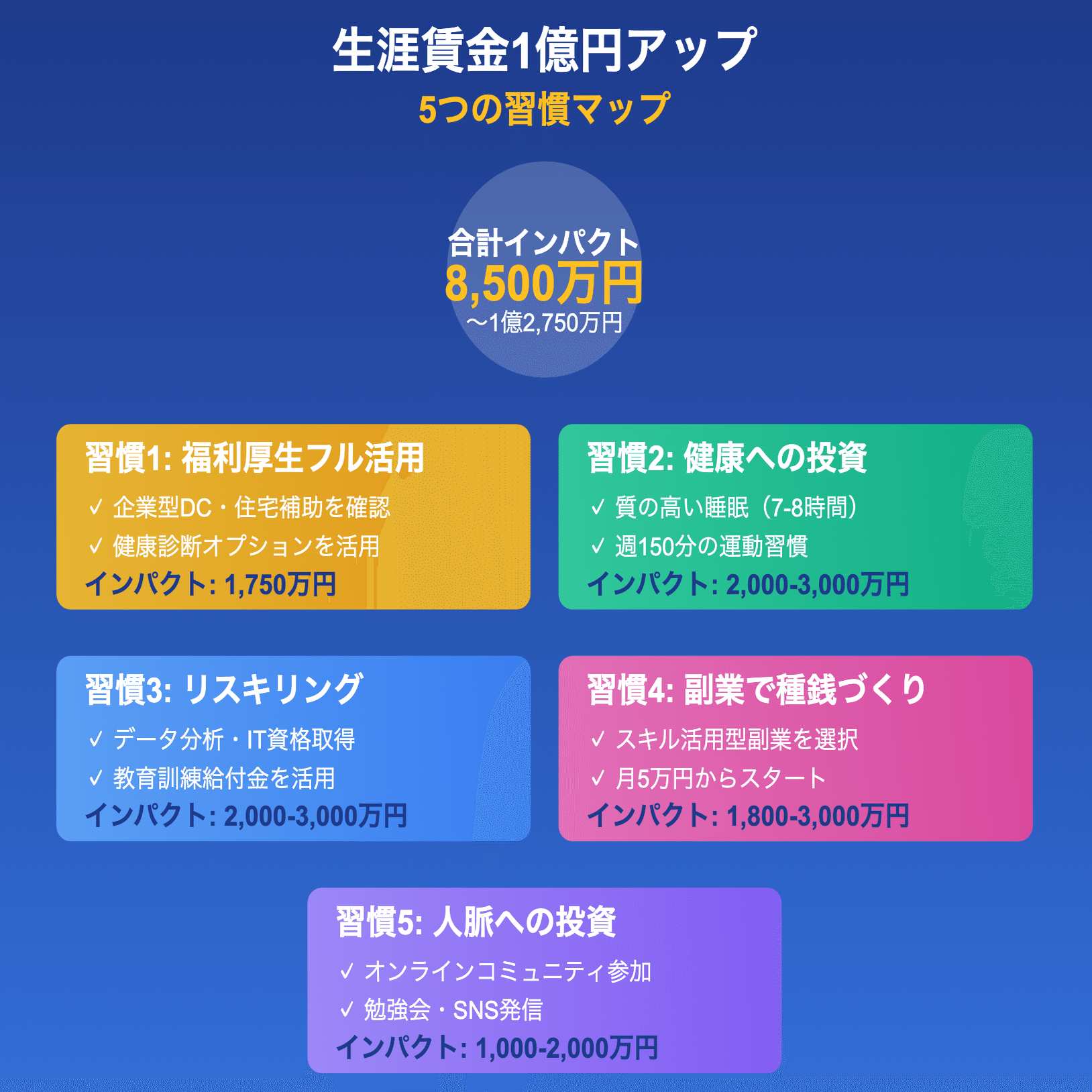 これが、5つの習慣がもたらす生涯賃金へのインパクトです。